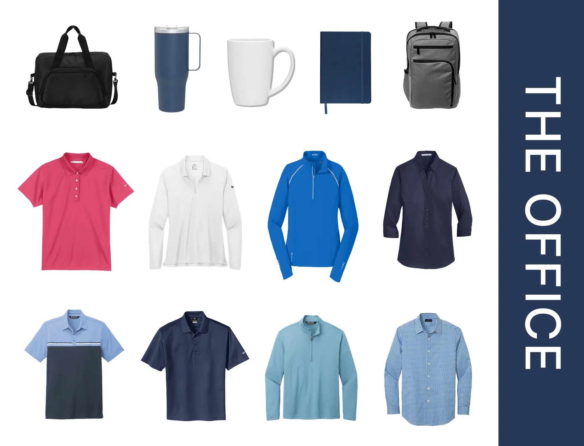 A great mix of brand names and business casual blanks, The Office is the perfect pack for companies looking for business casual classics.