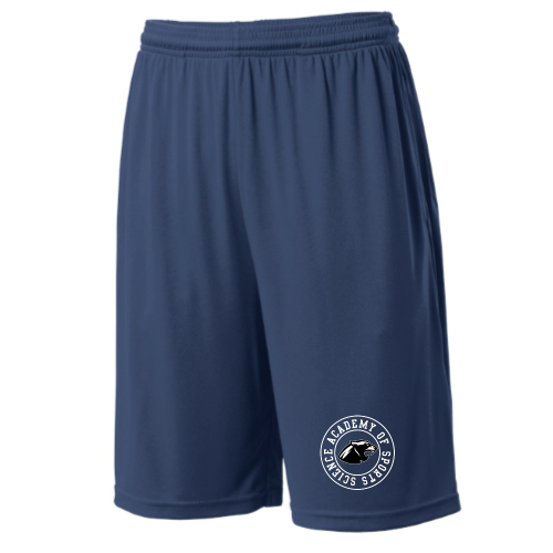 Our lightweight, unlined short with pockets wicks moisture and locks in colors. 3.8-ounce, 100% polyester interlock with PosiCharge technology Removable tag for comfort and relabeling Elastic waistband Continuous loop drawcord Side pock
