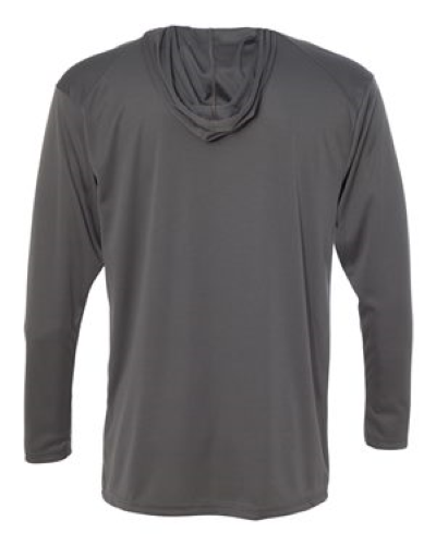 A lightweight, athletic hooded tee designed for performance, comfort, and movement. This moisture-wicking, antimicrobial polyester shirt features paneled shoulders for mobility, a self-fabric hood with drawcord, and a sleek, sporty look that works for workouts or casual wear.