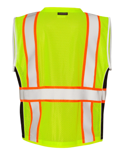 Two outside cargo pockets join a reflective gusseted radio/utility and two-tier pencil pocket to keep you organized.100% Ultra-Cool™ polyester meshZipper front closure with durable webbing reinforcement2" wide silver reflective materials with 3" breathable contrasting colorReflective trim around arms and piping down black side panelsTwo inside patch pocketsANSI/ISEA 107 Class 2 compliantLime (1513), Orange (1514)