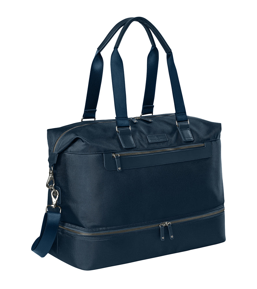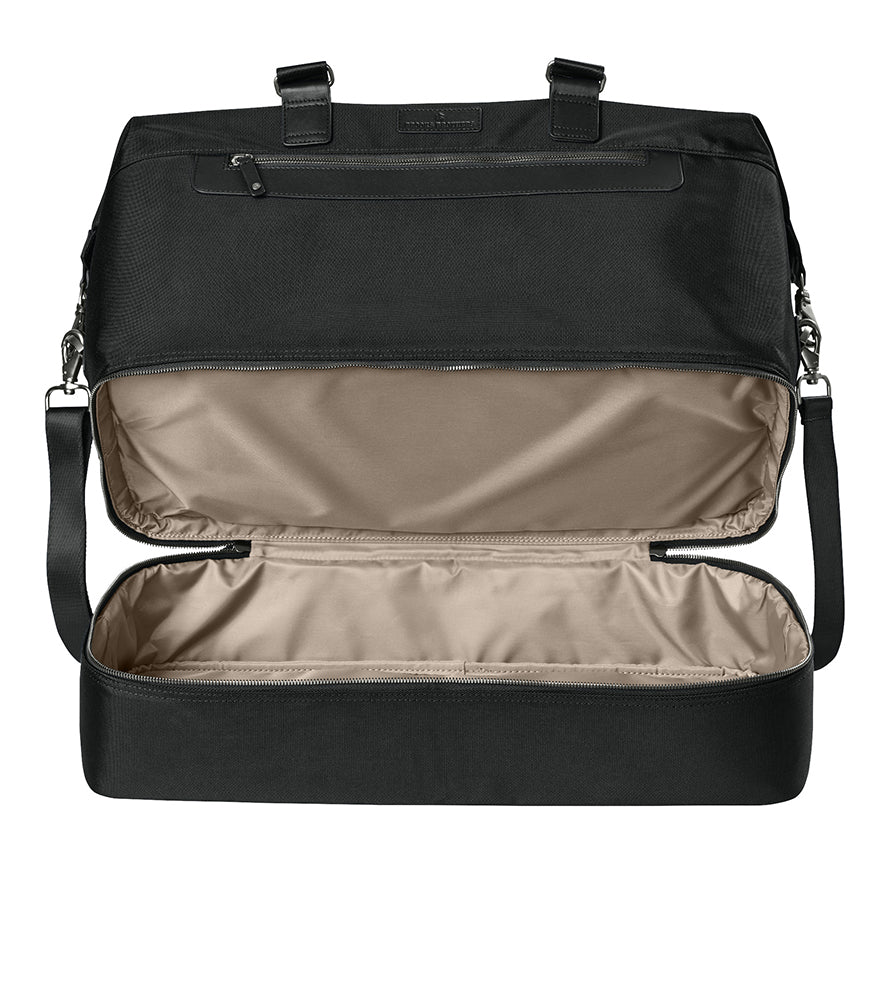 - Zippered shoe compartment at base — keep footwear separate.