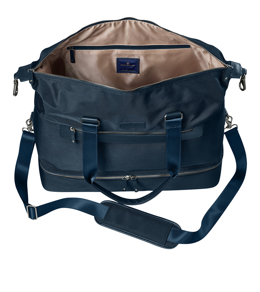 - Double leather-wrapped web handles for hand-carry.