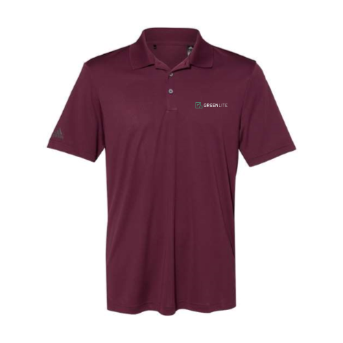 3.8 oz., 100% polyesterHydrophilic finishUPF 303-button placketRib-knit collarNeutral grey heat transfer logo on right sleeve