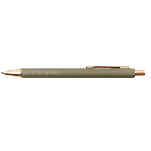 Plunger Action. Unique Grip Design. Aluminum Pen. Trendy Rose Gold Accents.