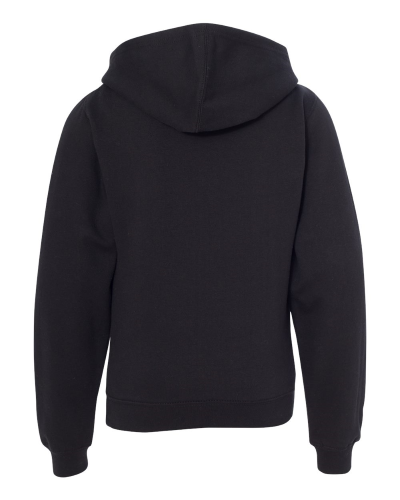 8.5 oz., 80/20 cotton/polyester100% cotton, 20 singles face yarnColored Heathers and Charcoal Heather are 55/45 cotton/polyesterGrey Heather is 75/25 cotton/polyester1x1 rib cuffs and waistbandSplit-stitch double-needle sewing throughoutTwill neck tapeNo drawcordJersey lined hoodFront pouch pocket