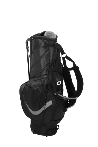 This stand bag is truly a vision of OGIO quality and innovation with two detachable pockets for easy embellishment. 8-way Woode ™ top Triple Triangle suspension shoulder strap system 6 zippered pockets fleece-lined valuables pocket
