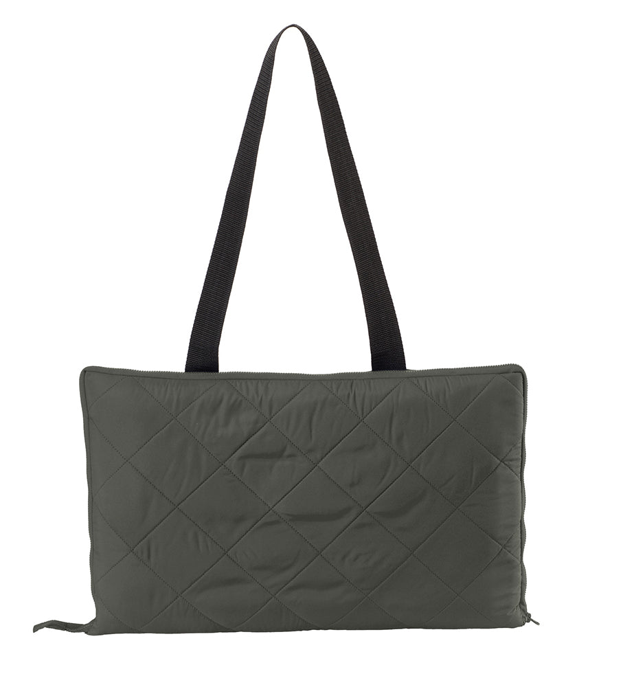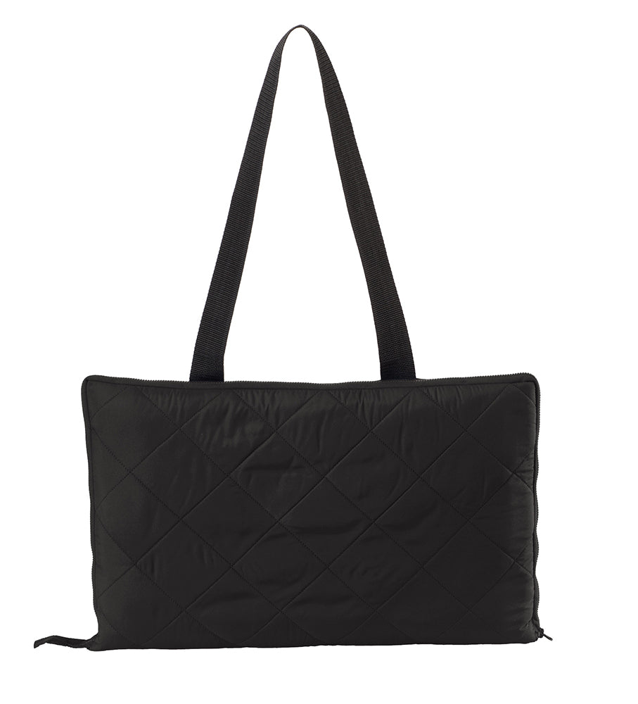 - Zips around itself for compact folding — turns into a compact carry size.