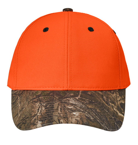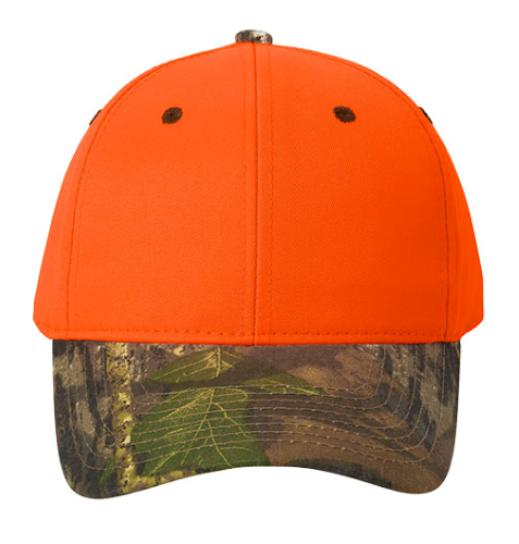 Add safety to the hunt with this cap that features the popular Mossy Oak ® print on the brim and closure.| Fabric: 100% fluorescent polyester crown, 60/40 cotton/poly brim Structure: Structured Profile: Mid Closure: Hook and loop