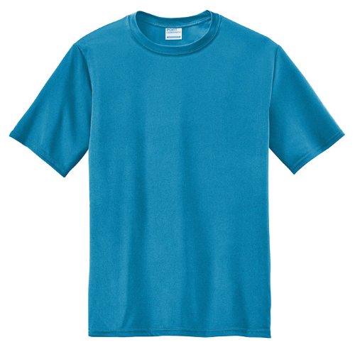 Our value-priced polyester tee performs with Dry Zone ® moisture-wicking technology to keep you cool, dry and comfortable. | 3.8-ounce, 100% polyester Tag-free label Set-in sleeves Double-needle neck, sleeves and hem Side seame