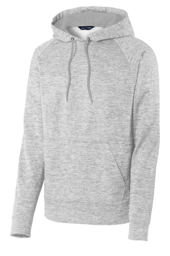 Stay charged in this moisture-wicking, color-preserving fleece in heathered yarn dye.| 100% polyester with PosiCharge technology Taped neck Three-panel hood with solid lining and dyed-to-match drawcord Raglan sleeves Front pouch pocket