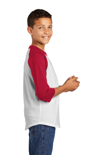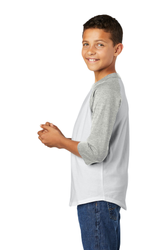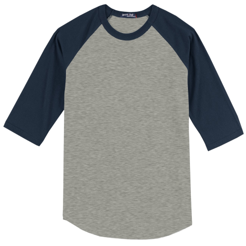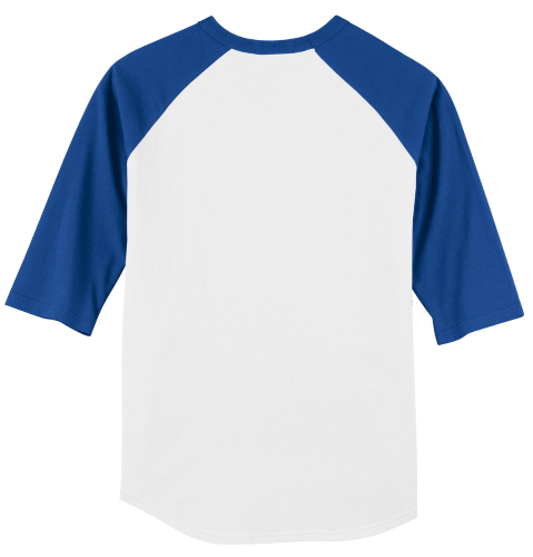 This classic knit jersey is combed for softness and available in several team colors. | 5.1-ounce, 100% ring spun combed cotton Colorblock sleeves and rib knit crewneck 3/4 raglan sleeves