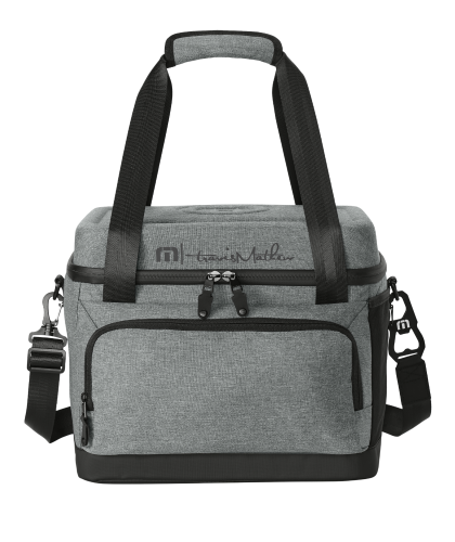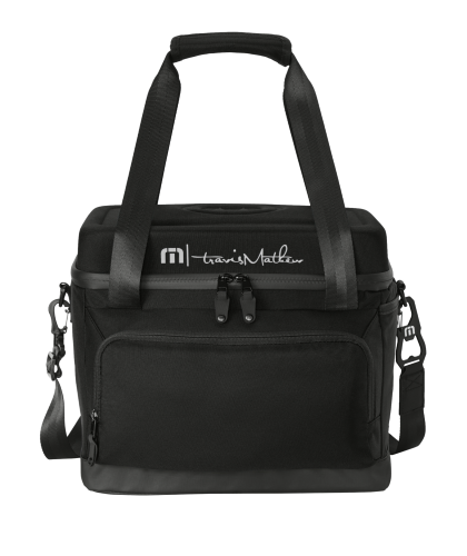 - Convenient Top Storage: A molded top panel opens for quick access and includes interior storage and a heat-transfer TravisMathew logo.