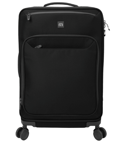 Ready, set, check! Cruise through any excursion equipped with this spinner that's roomy and all just for you. 600D poly Durable water repellent (DWR) finish Molded back with embossed TM logo Padded top handle for quick grab and easy lifting Zippered front pocket Large main compartments with compression straps Padded side grab handle 4 spinning wheels for easy maneuvering and increased stability Locking retractable handle Rubberized TM logo Dimensions: 22'h x 17'w x 9.5'd Capacity: 3,478 cu. in./57 L Weight: 8.07 lbs./3.66 kg Note: Bags not intended for use by children 12 and under. **