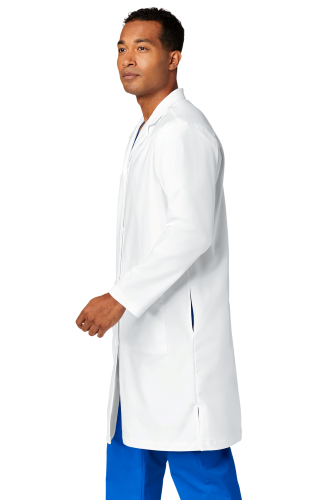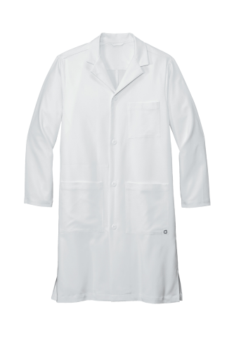 65/35 poly/cotton poplin Locker loop Left chest pocket with pen slot Top-loading front pockets Interior tablet pocket Side seam opening for easy access to pants pockets Back yoke with pleats 4-button placket opening Cente
