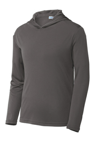 This lightweight hooded pullover locks in color and wicks moisture. It’s versatile enough for year-round wear.