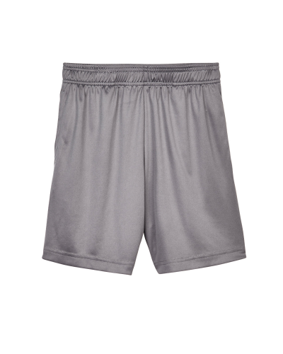 3.5 oz./yd2 / 130 gsm 100% polyester interlock; Moisture-wicking and UV 40+ protection; Side pockets; Team fit; Cationic dyes to ensure superior brightness and excellent color fastness; Elasticized waistband; No drawcord; 7" inseam; Transitioning from heat-seal label to tear away label. Inventory may be mixed